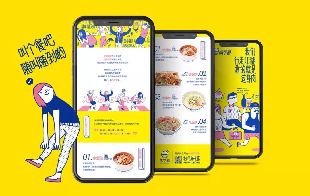 則以手繪的形式將叫餐的場(chǎng)景夸張化