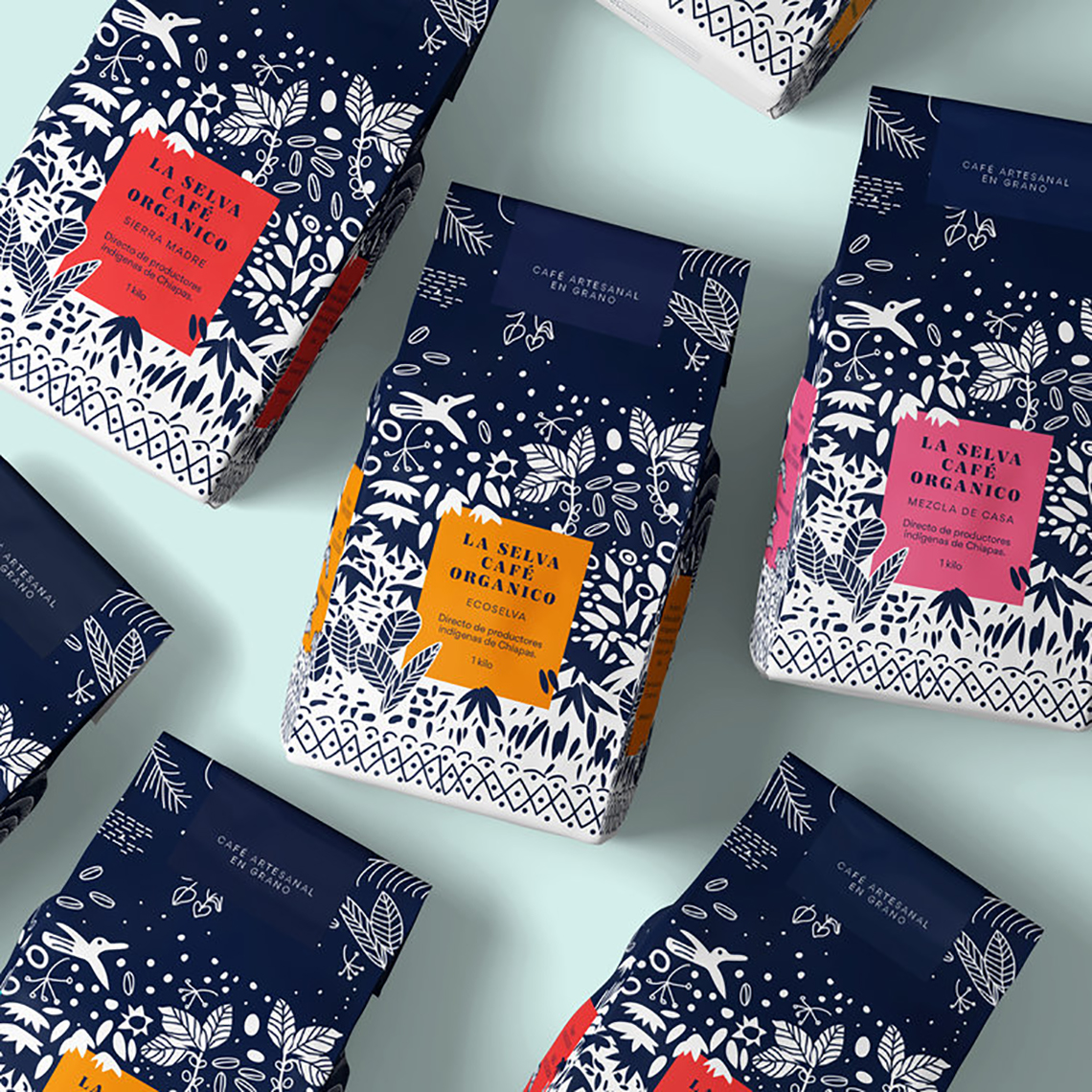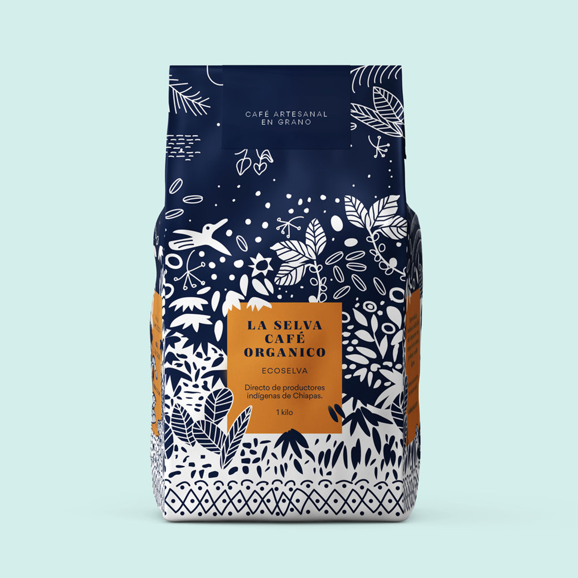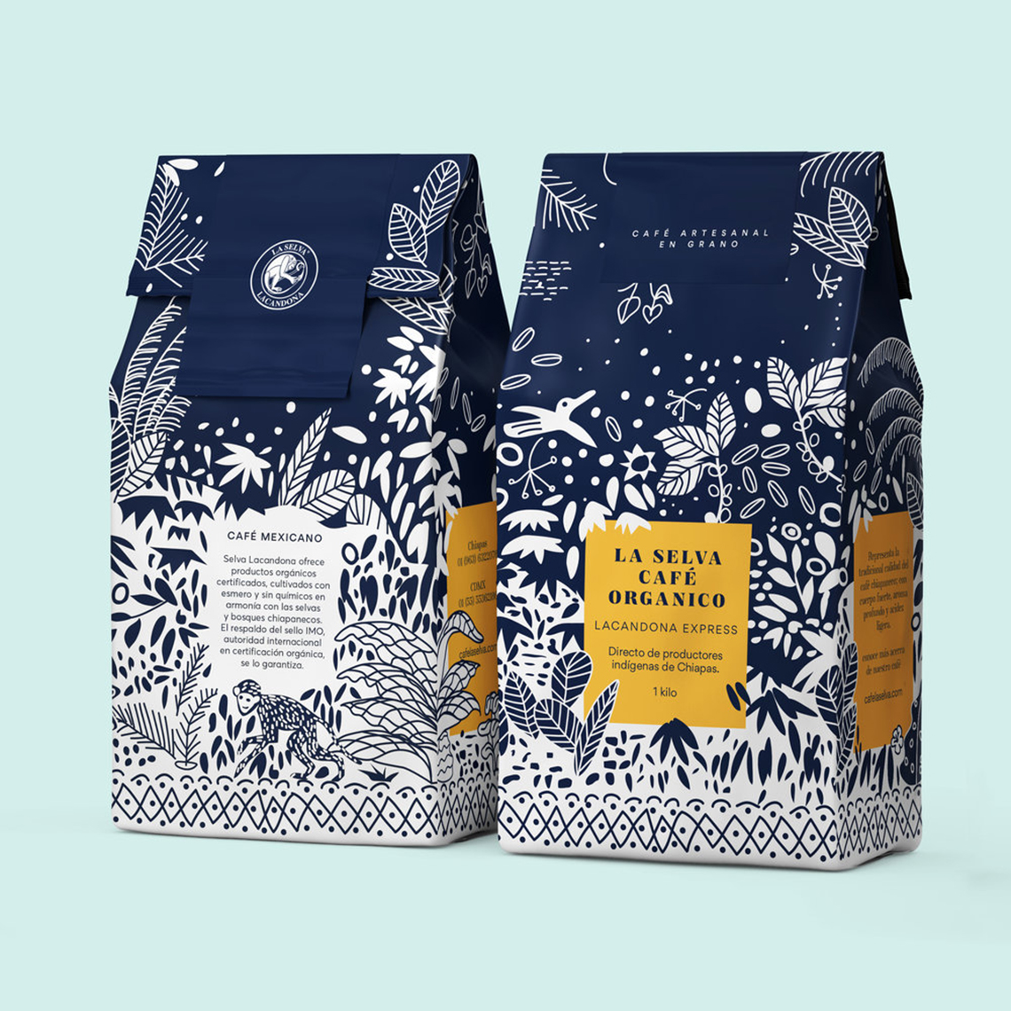 ? ? ? ? La Selva Café提供經(jīng)認證的有機產(chǎn)品,經(jīng)過精心培育,沒有化學品,與墨西哥恰帕斯的叢林和森林和諧相處。它代表了恰帕斯咖啡的傳統(tǒng)品質(zhì),具有濃郁的酒體、濃郁的香氣和淡淡的酸度。海事組織印章的支持保證了其有機來源。為了重新設計,以前的包裝插圖的元素被采取,使它有一個更現(xiàn)代和更具吸引力的扭曲。深藍色的顏色和正負兩色之間的相互作用,說明了咖啡采摘的茂密叢林,這是該地區(qū)典型的動植物間的叢林。