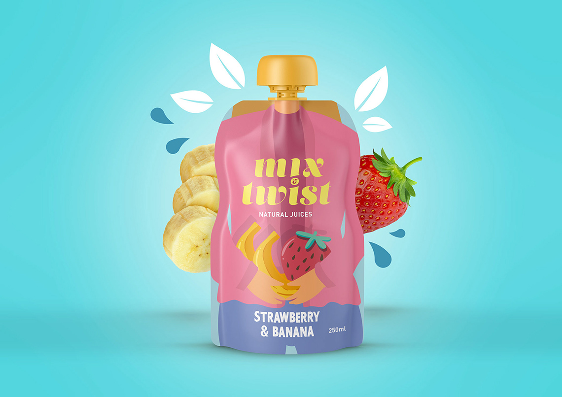Mix&Twist的品牌和包裝設(shè)計(jì),一種不含添加劑或人工的天然果汁品牌,其特點(diǎn)是其主要成分的原始混合物。創(chuàng)造了一個(gè)引人注目的和與眾不同的設(shè)計(jì),基于主要的消費(fèi)者:青少年正在尋找一個(gè)健康,但花哨的產(chǎn)品。這就是為什么要為不同的身體青少年角色制作插圖,所以當(dāng)他們喝果汁時(shí),他們就會(huì)成為你身體的一部分。對(duì)于標(biāo)志,使用一個(gè)更冷靜的風(fēng)格,帶來(lái)信心和嚴(yán)肅的設(shè)計(jì),代表最健康的部分混合和扭曲。這一設(shè)計(jì)打破了果汁行業(yè)的標(biāo)準(zhǔn),無(wú)疑會(huì)引起超市的注意。