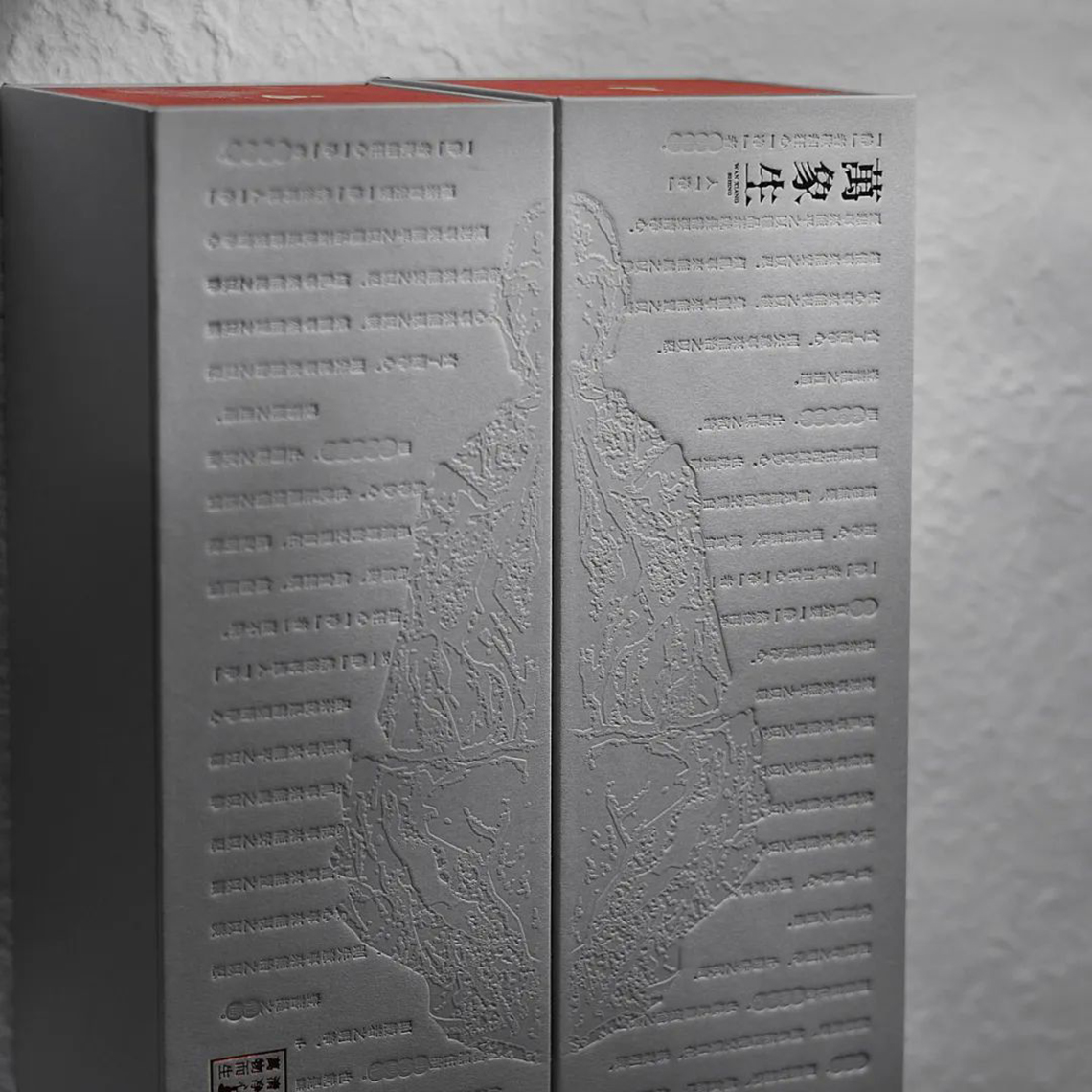 包裝采用仿真巖石特種紙,立體浮雕印刷,燙印工藝